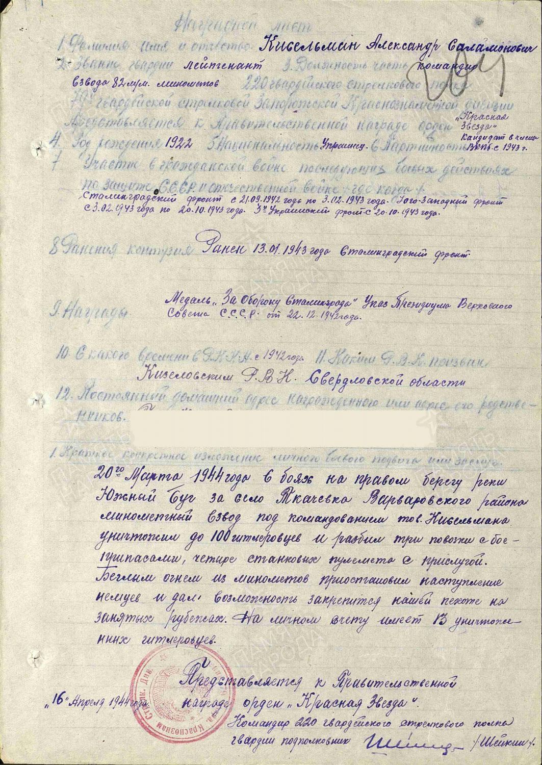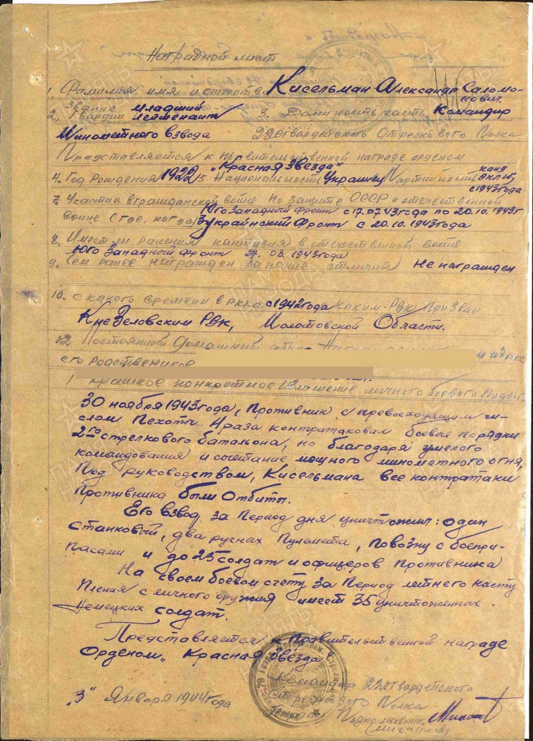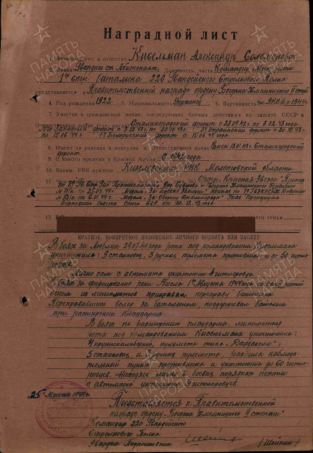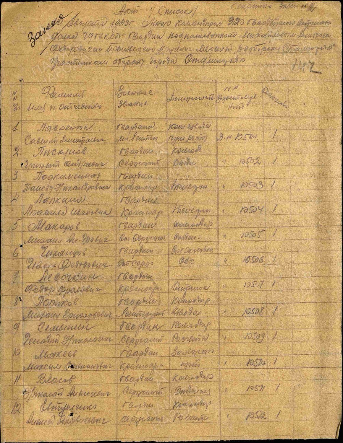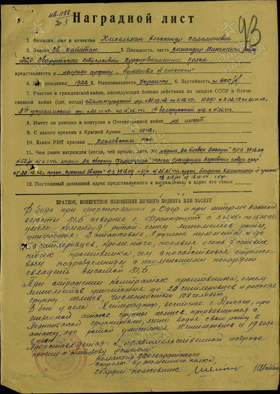 Наградные листы