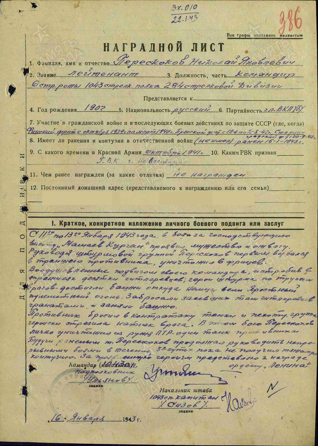 Наградные листы